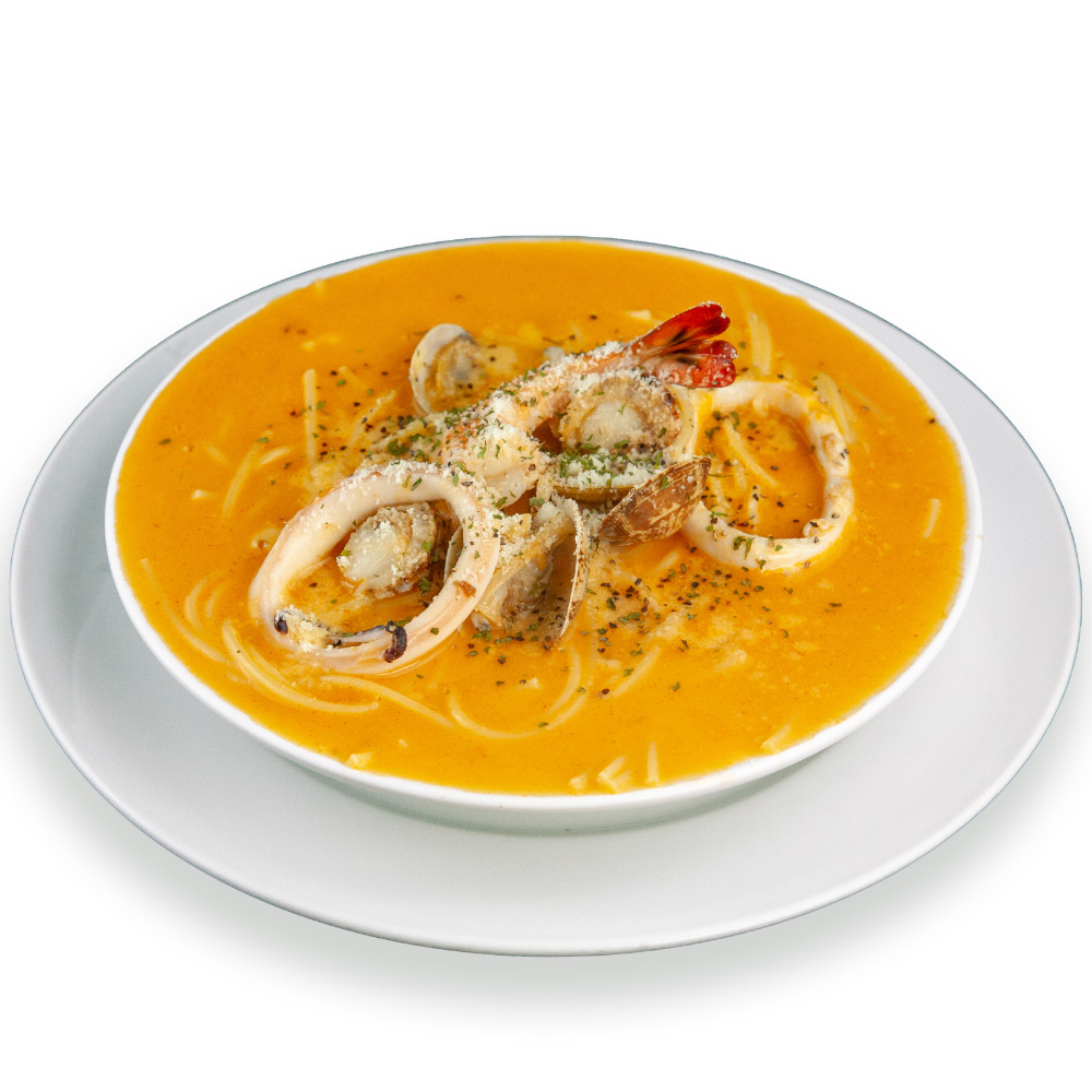 海の恵みたっぷり!エビの旨味が凝 縮された 、濃 厚なビスクソースが絡む贅沢なスープスパゲッティ。